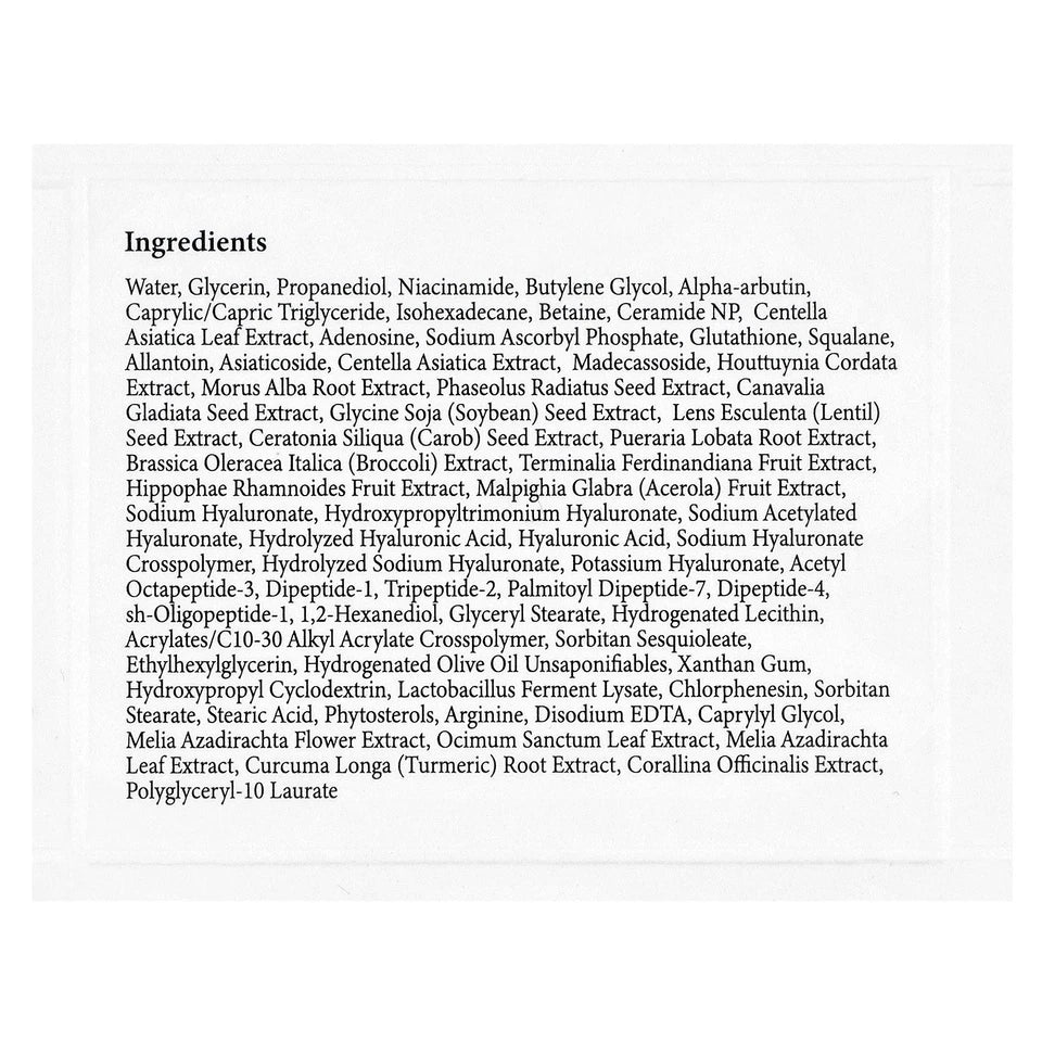 ماء، جلسرين، بروبانديول، نياسيناميد، بوتيلين جليكول، ألفا أربوتين، كابريليك/كابريك تراي جليسريد، إيزوهيكساديكان، بيتاين، سيراميد NP، مستخلص أوراق سنتيلا آسياتيكا، أدينوسين، فوسفات أسكوربيل الصوديوم، جلوتاثيون، سكوالين، ألانتوين، أسياتيكوسيد، مستخلص سنتيلا آسياتيكا، ماديكاسوسيد، مستخلص هوتوينيا كورداتا، مستخلص جذر مورس ألبا، مستخلص بذور الفاصولياء الشعاعية، مستخلص بذور كانافاليا جلادياتا، مستخلص بذور فول الصويا، مستخلص بذور العدس، مستخلص بذور الخروب، مستخلص جذر بويراريا لوباتا، مستخلص براسيكا أوليراسيا إيتاليكا (البروكلي)، مستخلص ثمار تيرميناليا فردينانديانا، ثمار هيبوفاي رامنويدس مستخلص، مستخلص ثمار مالبيغيا غلابرا (أسيرولا)، هيالورونات الصوديوم، هيالورونات هيدروكسي بروبيل تريمونيوم، هيالورونات الصوديوم الأسيتيل، حمض الهيالورونيك المُحلل، حمض الهيالورونيك، بوليمر كروسبوليمر هيالورونات الصوديوم المُحلل، هيالورونات البوتاسيوم، أسيتيل أوكتابيبتيد-3، ثنائي ببتيد-1، ثلاثي ببتيد-2، بالميتويل ثنائي ببتيد-7، ثنائي ببتيد-4، sh-أوليجوببتيد-1، 1،2-هيكسانيديول، ستيرات الجلسرين، ليسيثين مهدرج، أكريلات/C10-30 ألكيل أكريلات كروسبوليمر، سوربيتان سيسكوي أوليات، إيثيل هكسيل جلسرين، زيت زيتون مهدرج غير قابل للتصبن، صمغ زانثان، هيدروكسي بروبيل سيكلوديكسترين، لاكتوباسيلس مستخلص التخمير، كلورفينيسين، ستيرات السوربيتان، حمض الستياريك، فيتوستيرول، أرجينين، إيديتات ثنائي الصوديوم، كابريليل جليكول، مستخلص زهرة ميليا أزاديراشتا، مستخلص أوراق أوسيموم سانكتوم، مستخلص أوراق ميليا أزاديراشتا، مستخلص جذر الكركم، مستخلص كورالينا أوفيسيناليس، بولي جليسريل-10 لورات. آخر تحديث: أغسطس 2024