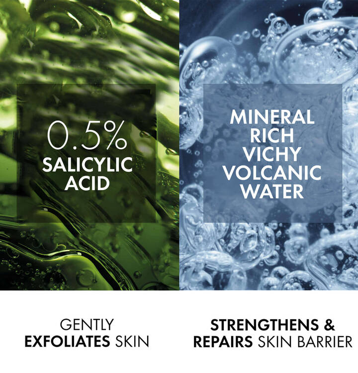 جل فيشي نورماديرم فيتوأكشن للتنظيف العميق اليومي هو غسول للوجه، مُختبر من قِبل أطباء الجلدية، مُصمم لعلاج حب الشباب لدى البالغين، مع الحفاظ على لطفه على البشرة الحساسة. يزيل هذا الجل اليومي الأوساخ والزيوت الزائدة والشوائب بفعالية دون التسبب في جفاف البشرة. تركيبة غنية بحمض الساليسيليك والزنك ومعادن النحاس وماء فيشي البركاني المميز، تعمل على تقليل عيوب حب الشباب، وتنقية المسام، وتحسين لون البشرة وملمسها بشكل ملحوظ مع مرور الوقت. يُكوّن رغوة منعشة وخفيفة الوزن، تُشطف بسهولة، لتترك بشرتكِ نظيفة وناعمة ونقية بشكل واضح. تُظهر النتائج السريرية انخفاضًا ملحوظًا في الزيوت واللمعان والرؤوس السوداء من أول استخدام، وتحسنًا مستمرًا في نعومة البشرة، وتوحيد لونها، واختفاء علامات العيوب بعد أربعة أسابيع. بفضل تركيبته التي تم اختبارها ضد الحساسية ورائحة خفيفة، فإن هذا المنظف مناسب للاستخدام اليومي للبالغين الذين يعانون من البشرة المعرضة للبقع أو الدهنية، مما يجعله إضافة ذكية لأي روتين للعناية بالبشرة لمكافحة حب الشباب.