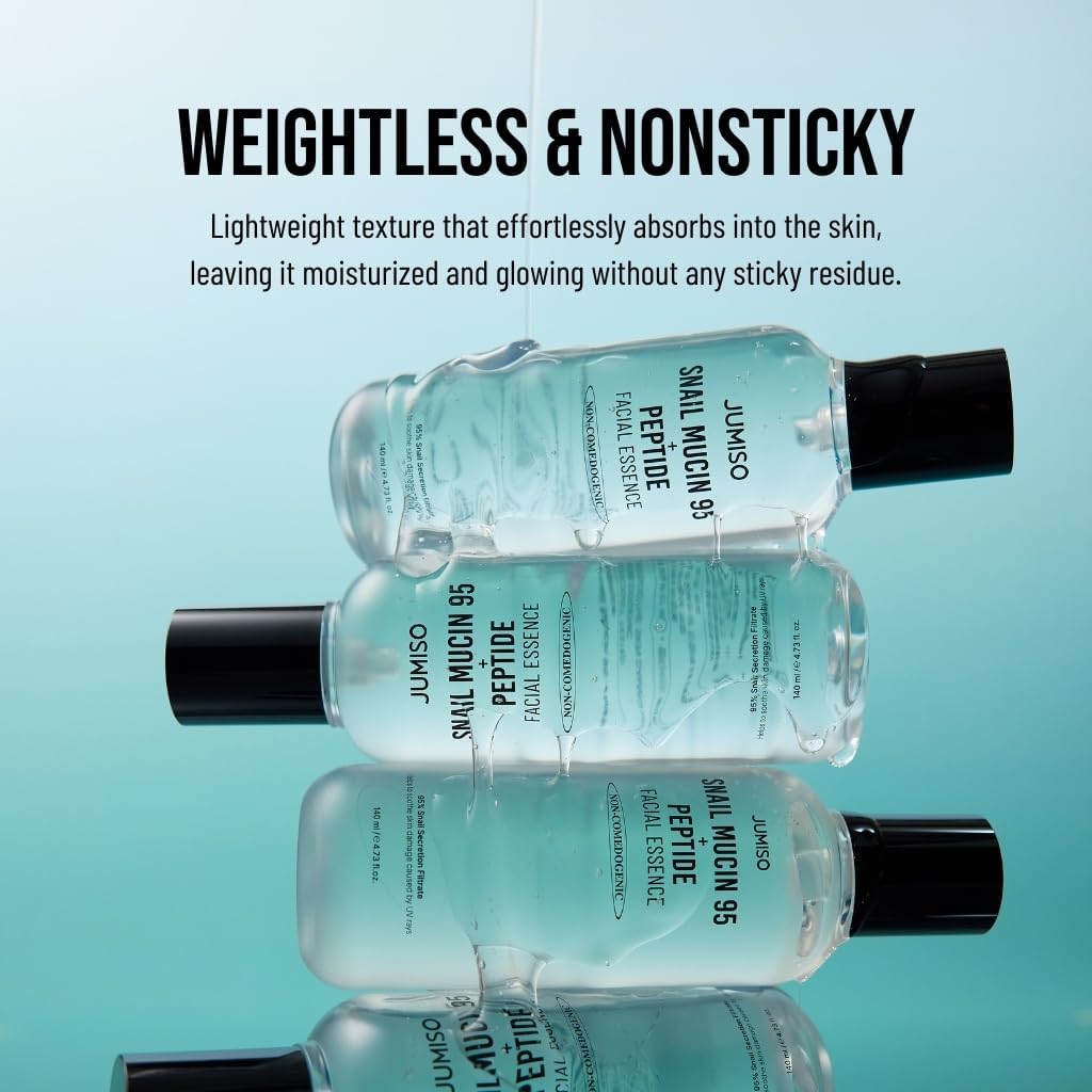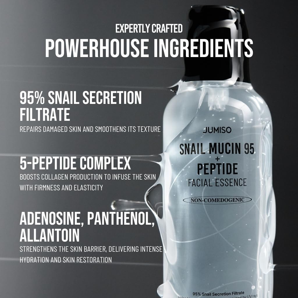 Transform your skin with JUMISO Snail Mucin 95% + Peptide Essence, a powerhouse K-beauty formula designed to deeply hydrate, repair, and revitalize. Featuring a high concentration of Snail Mucin (95%), this essence provides intense moisture, encourages skin regeneration, and helps heal damaged or irritated skin. Combined with Peptides, it boosts collagen production to firm and smooth your skin. Lightweight and fast-absorbing, it leaves no stickiness—only radiant, healthy-looking skin. A must-have for dry, dull, or aging skin, this essence fits perfectly into any skincare routine.